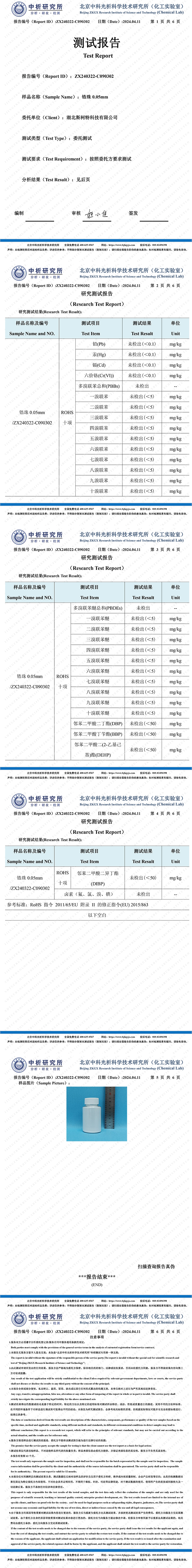 鋯珠0.05mm中科光析測試報告
